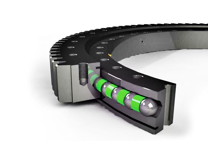 轉(zhuǎn)盤軸承是一種由內(nèi)圈、外圈、鋼球、保持架和密封圈等組成的軸承。其原理基于滾動摩擦的概念,內(nèi)圈和外圈之間通過鋼球作為滾動體,在保持架的限制下自由滾動,從而承受徑向和軸向負荷。同時,密封圈可防止灰塵和雜質(zhì)進入軸承內(nèi)部,保護軸承的使用壽命。